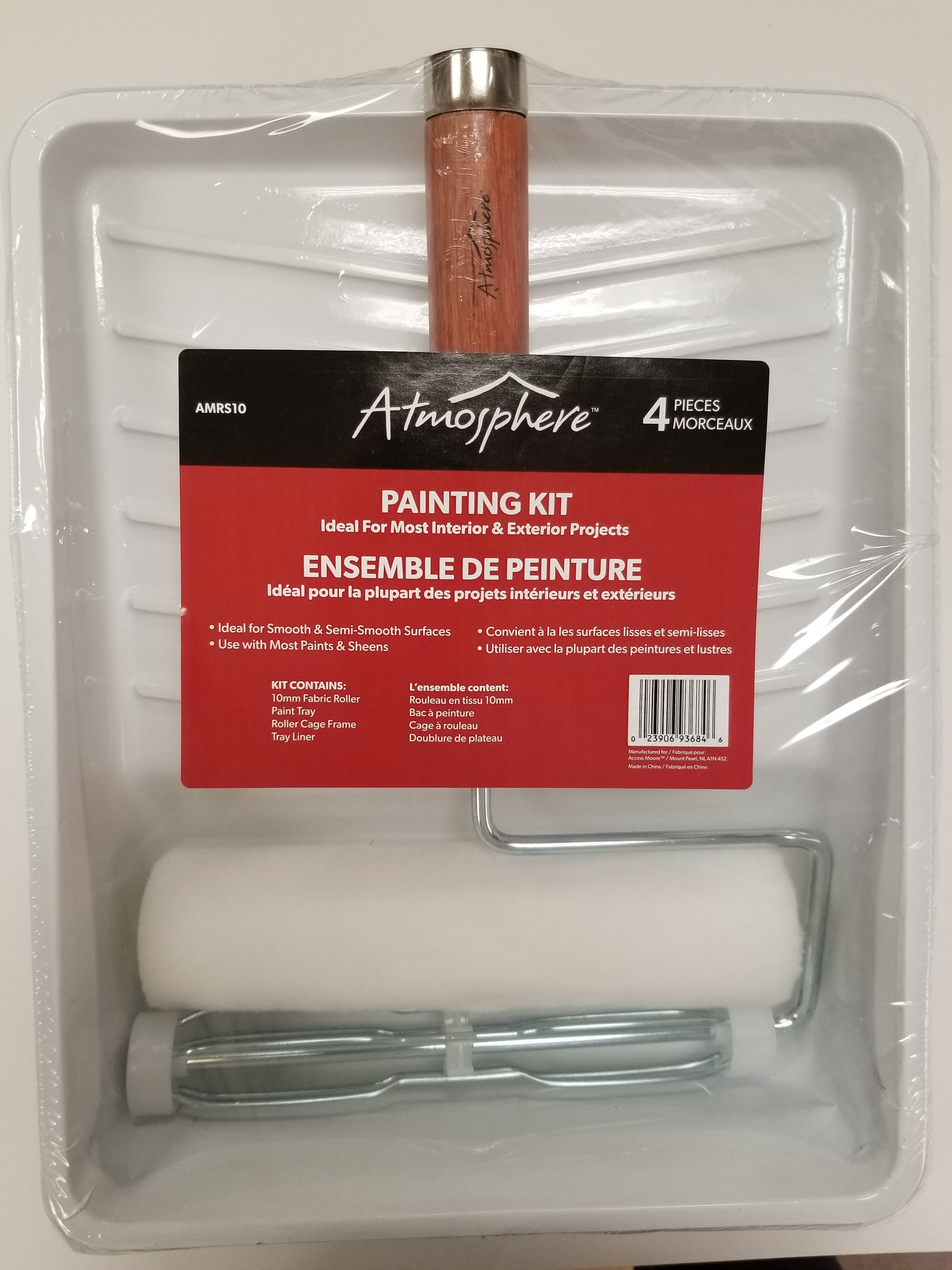4-piece Atmosphere painting kit for smooth & semi-smooth finishes, ideal for most interior and exterior projects. Kit contains: 10mm fabric roller, paint tray, roller cage frame, tray liner.