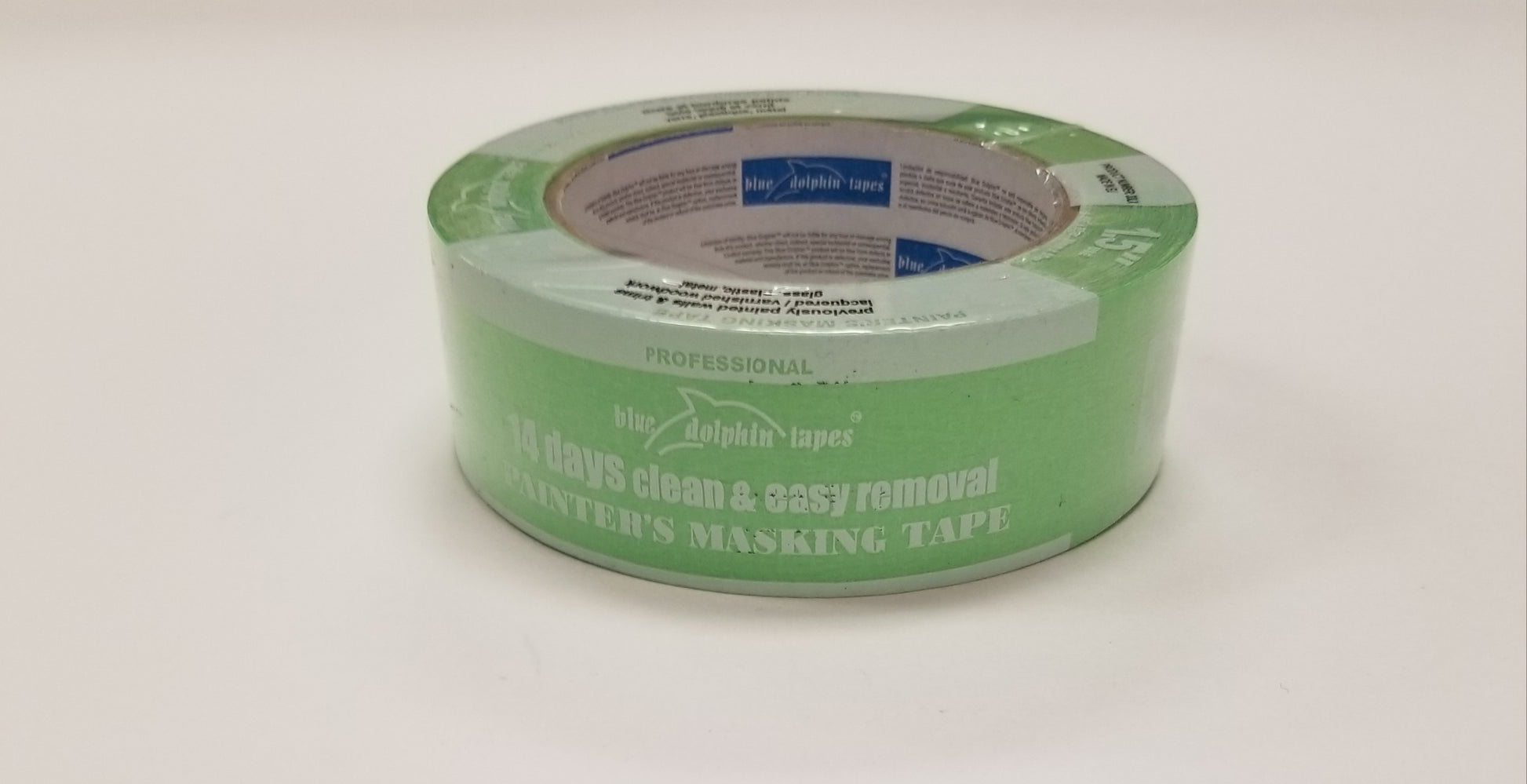 Blue Dolphin painter's masking tape for previously painted walls & trims, laquered/varnished woodwork, glass, plastic, and metal. 1.5" x 60 YD.
